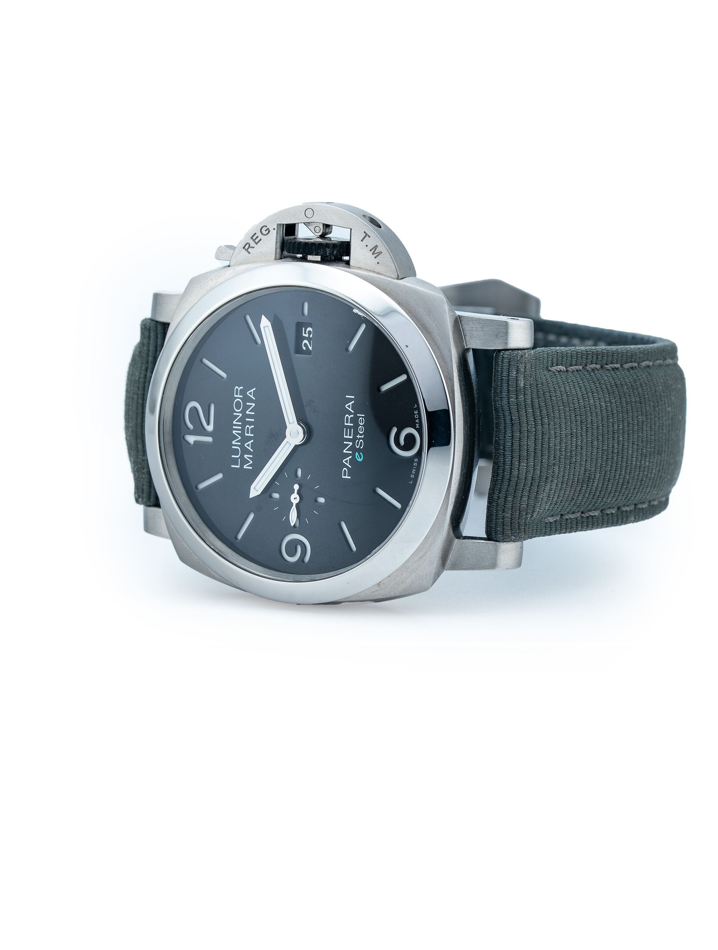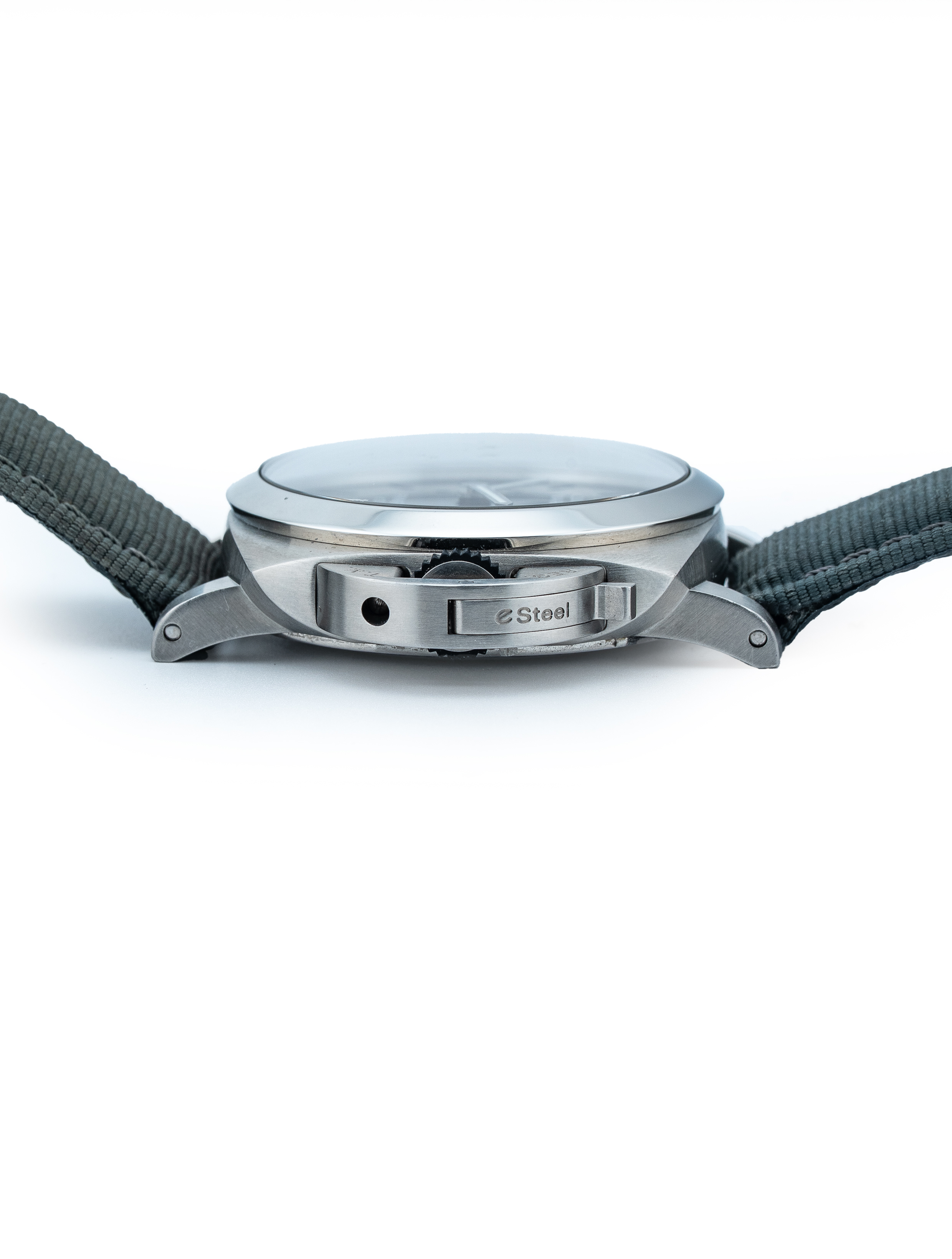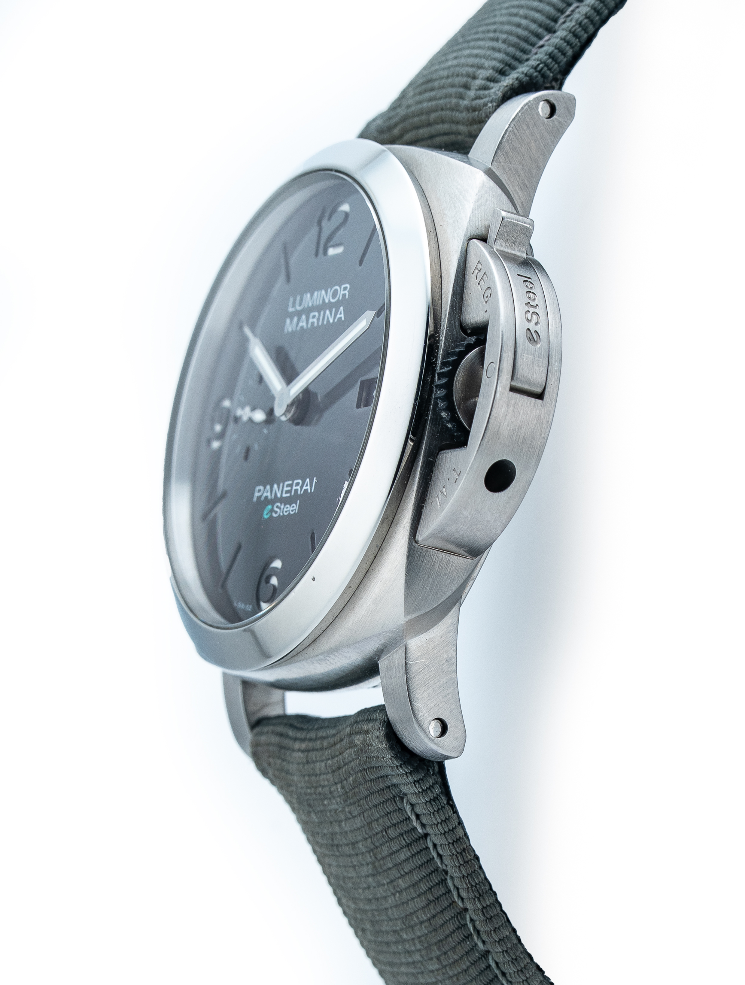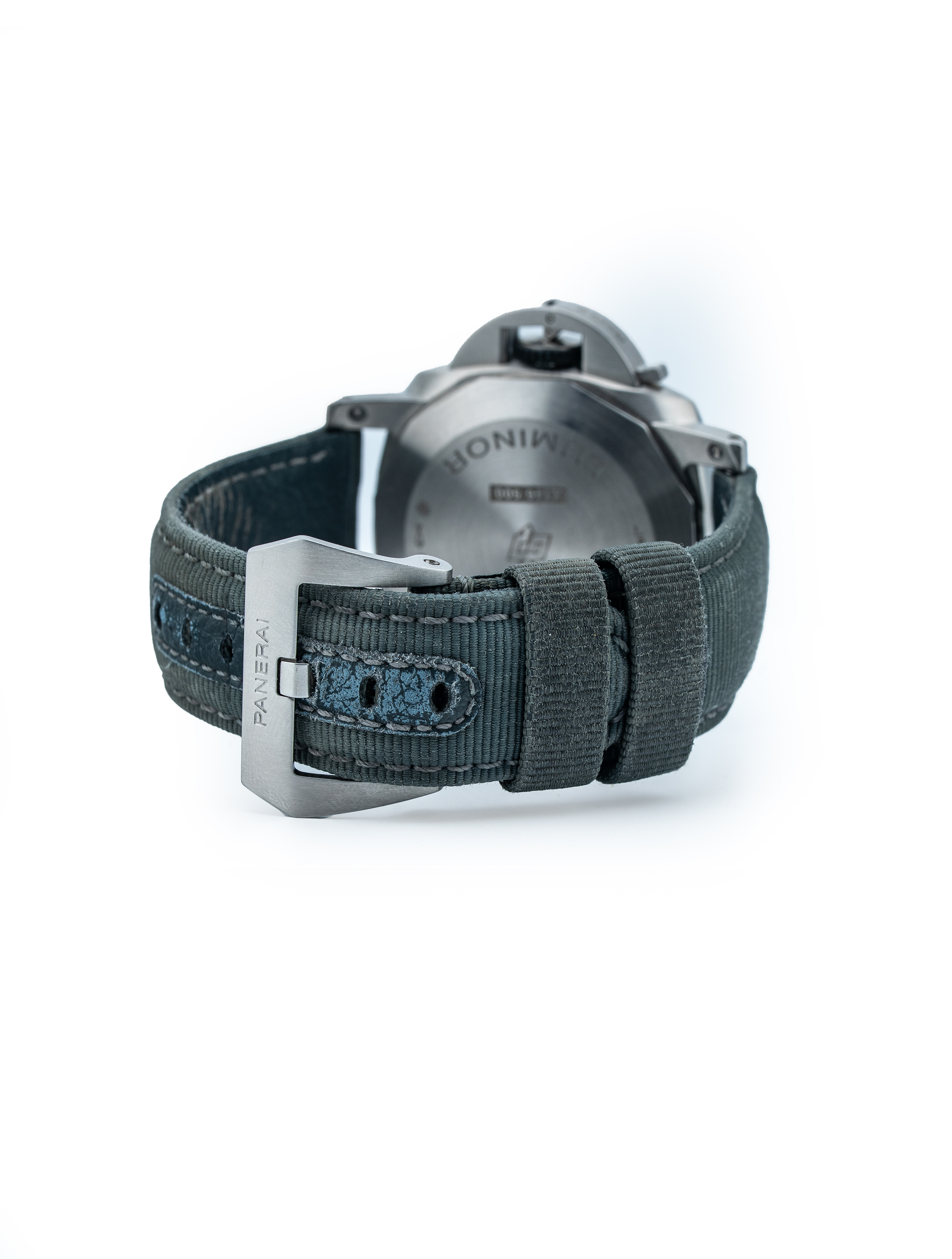 Strap/Buckle: Fitted to original Panerai Grigio (Grey) canvas/leather strap with original Panerai stainless steel Pre-V style tang buckle.