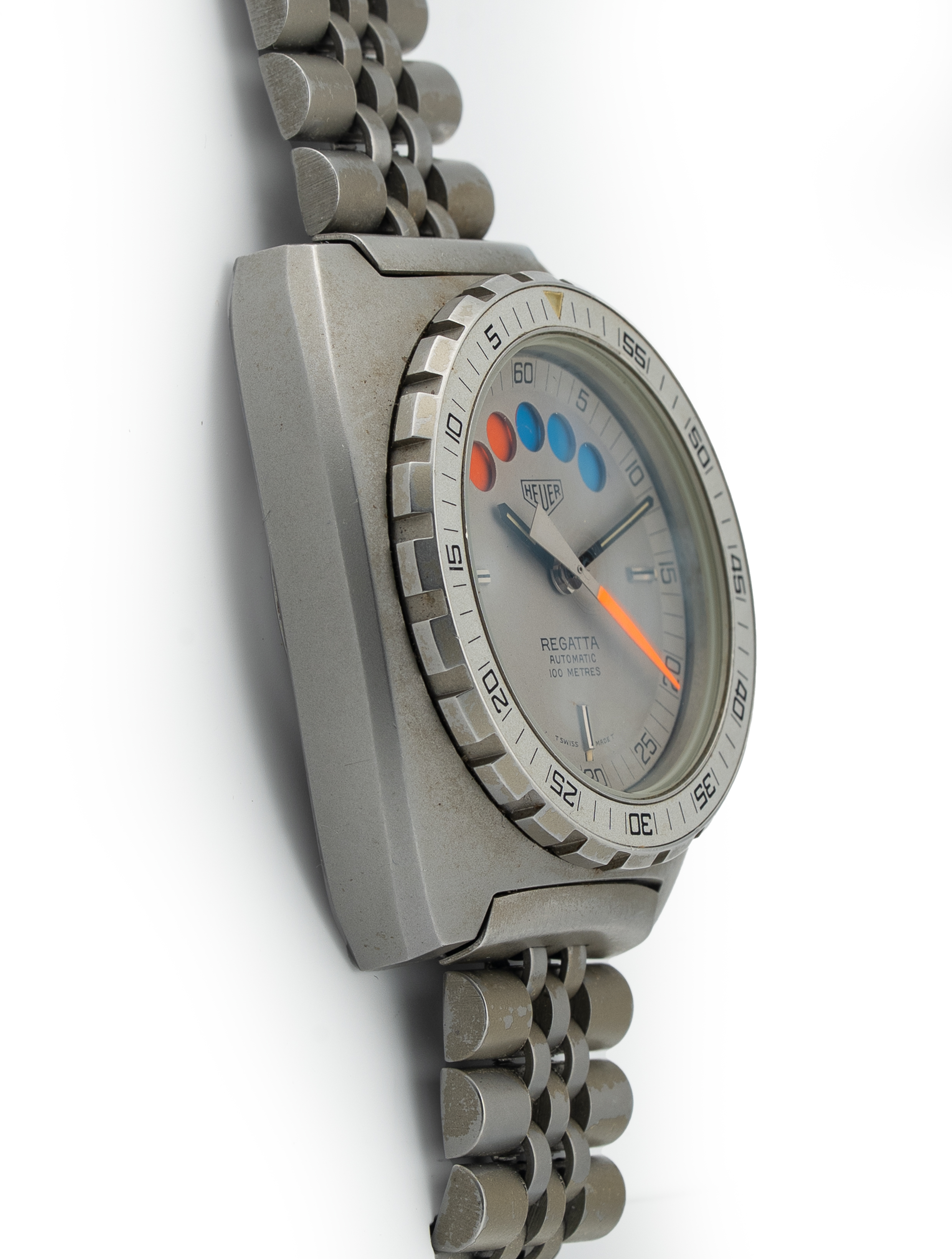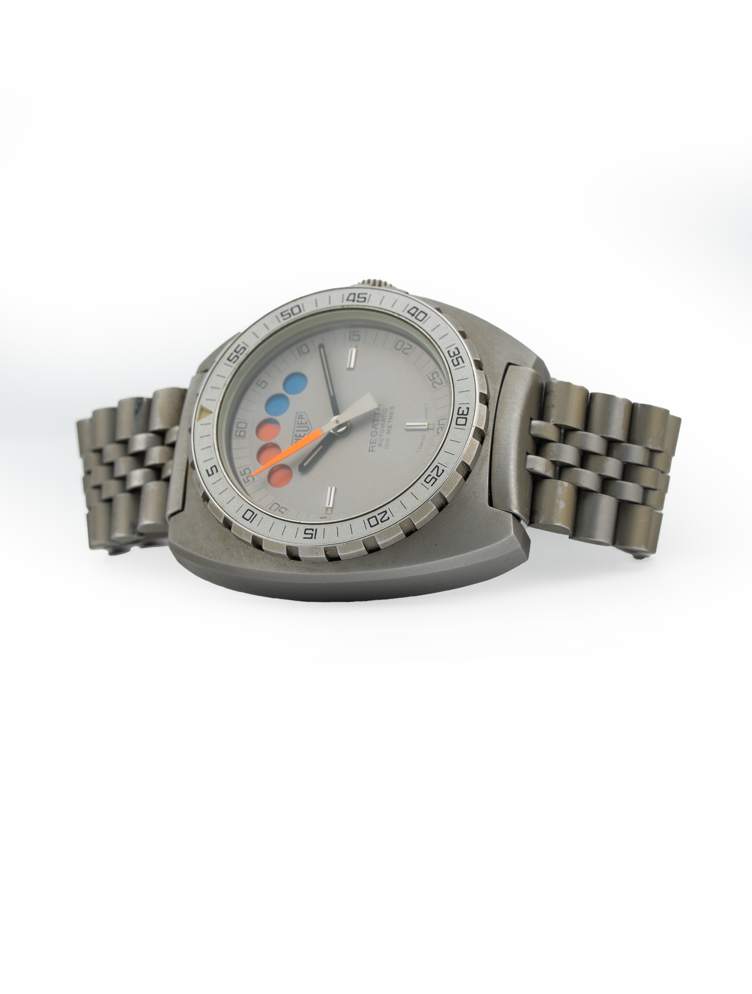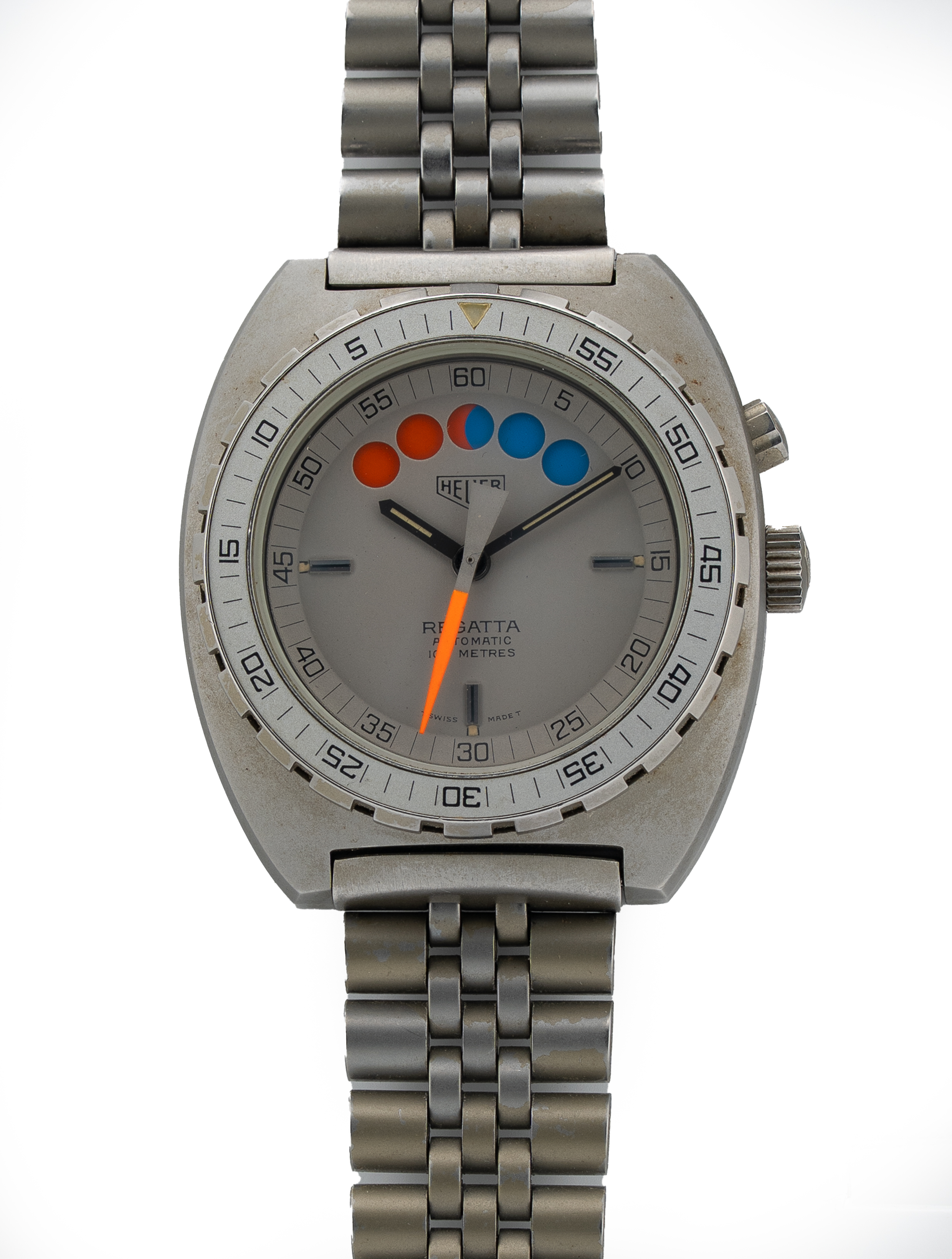 Regatta Countdown Mechanism: The dial features five circular apertures that act as a 10-minute countdown timer.
