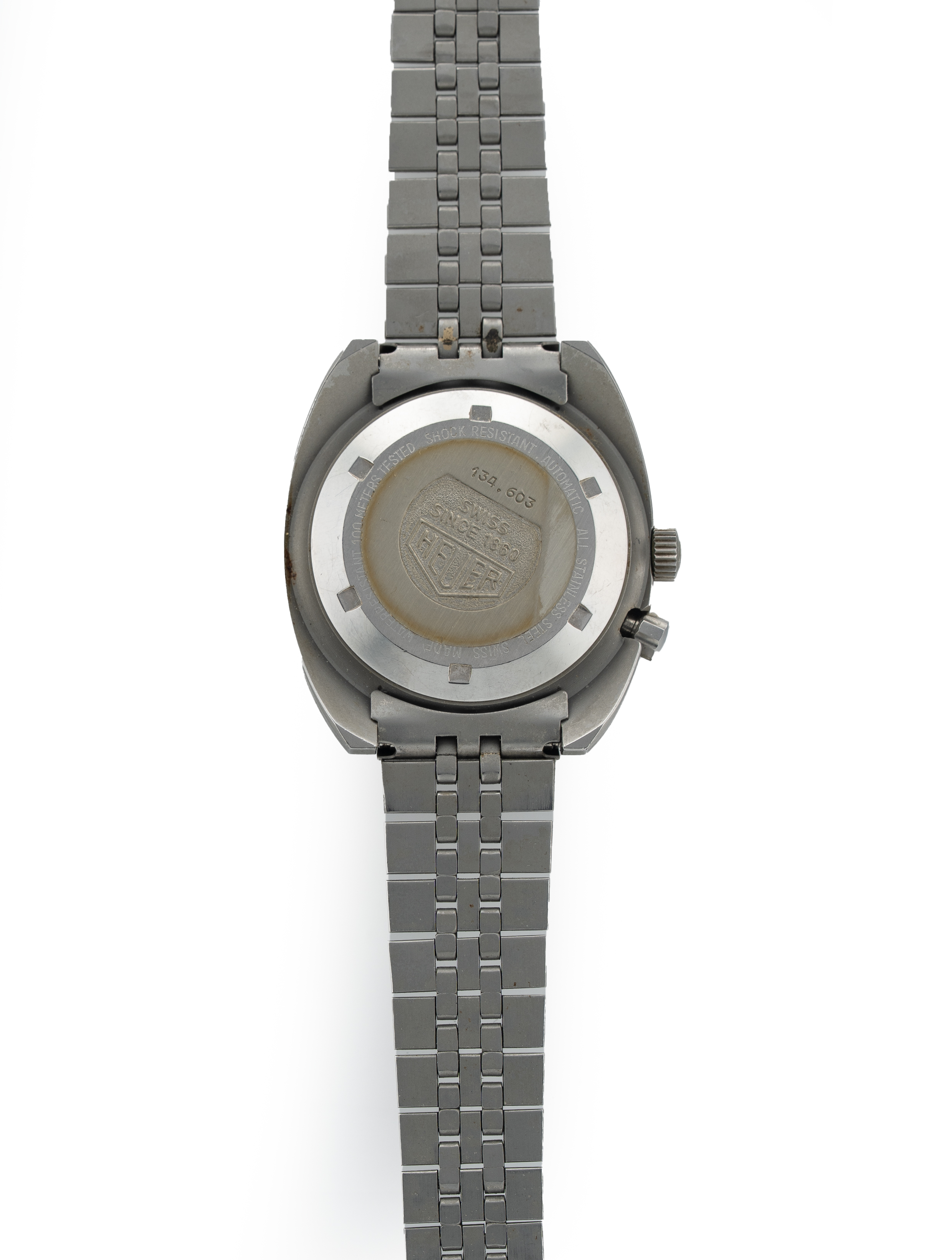 Bracelet: Original Heuer sports bracelet in stainless steel with folding deployant buckle. Bracelet is in great condition and will fit up to 7 3/4 inch wrist sizes.